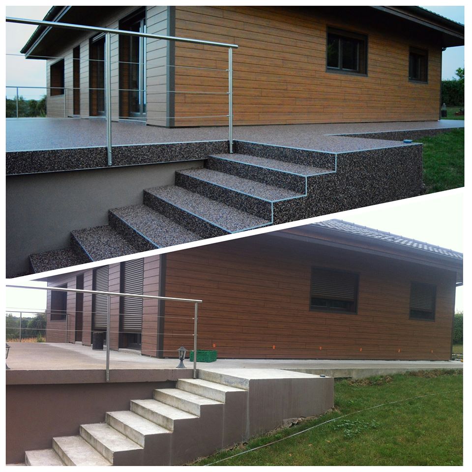 Possible en neuf et rénovation, sur béton ou carrelage existant avec la création d’allées carrossable ou non, la moquette de marbre ne craint ni le gel, ni les projections d’eau permettant de garder les pieds au sec.